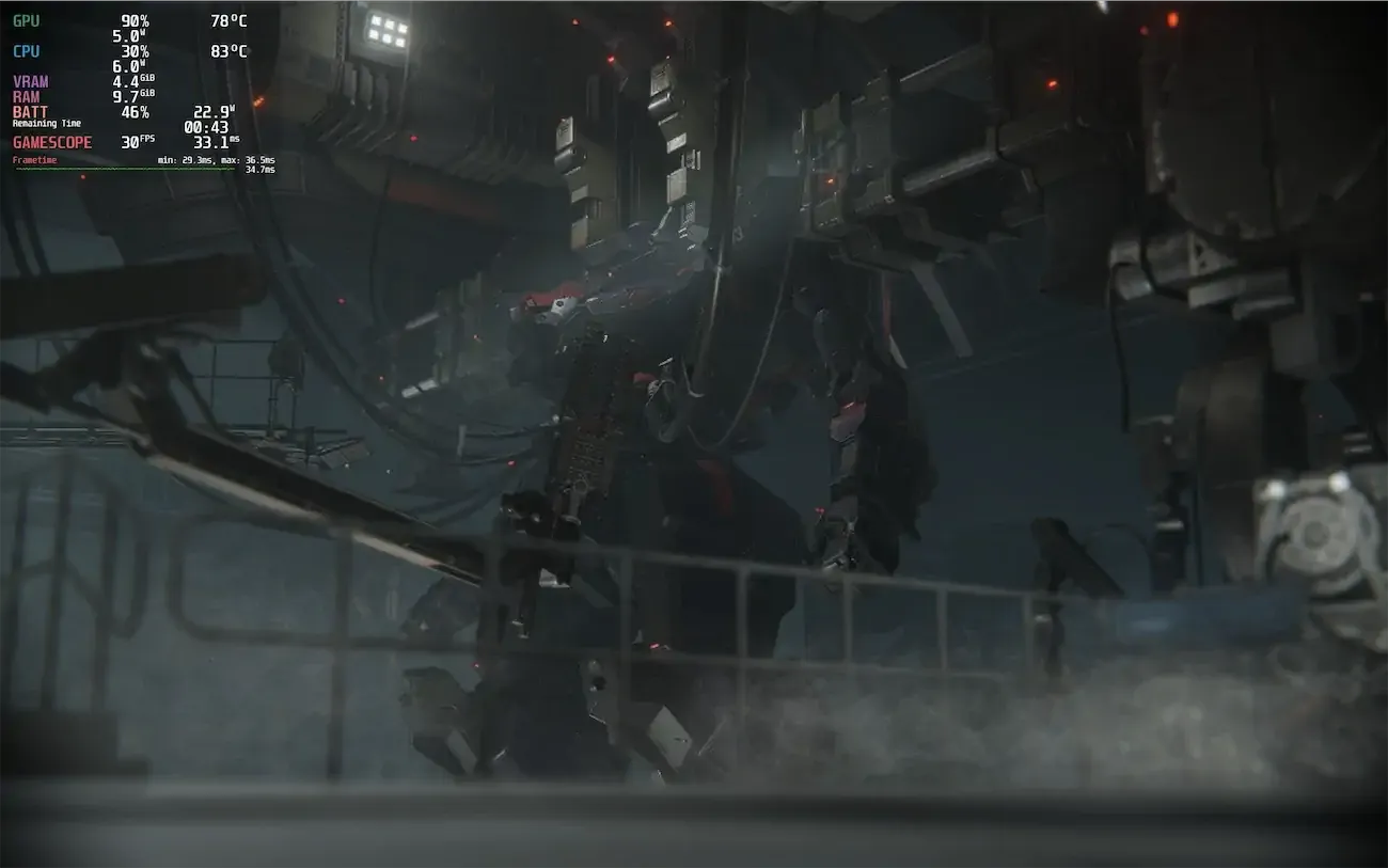 As I consider frame pacing as the most fundamental pillar for a good experience on Steam Deck, we quickly opted for a near-flawless 30FPS target. This gives us more rendering headroom for improved visuals and a generally helpful buffer for those later missions I've mentioned earlier.