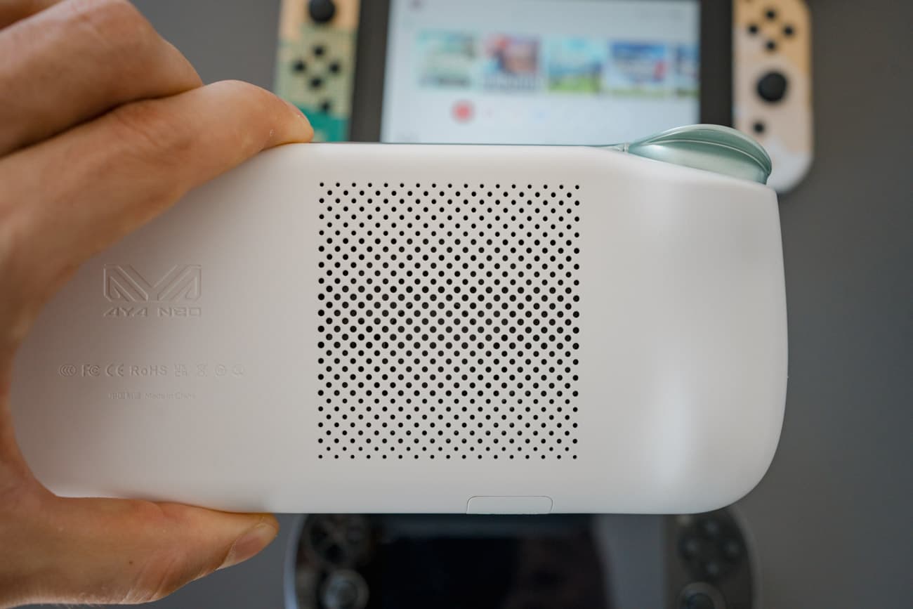 Talking of the speakers: AYANEO went for bottom-firing speakers that are... okay. They are fine, they aren't great, but not unusable either. They are just fine. They won't win a prize, and you will certainly not use the AYANEO as your ghetto blaster next time you take a train or a bus.