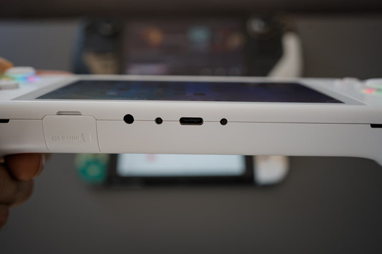 The Air 1s has two USB-C ports, one on top and one on the bottom, and I still believe every handheld should adopt this. It opens up way more options and makes for a better experience. For example, you can connect an external drive preloaded with ROMs while still charging. It's one of my biggest gripes with the Steam Deck and the ROG Ally, both of which have just one port. (Though, it looks like Lenovo listened to me.)