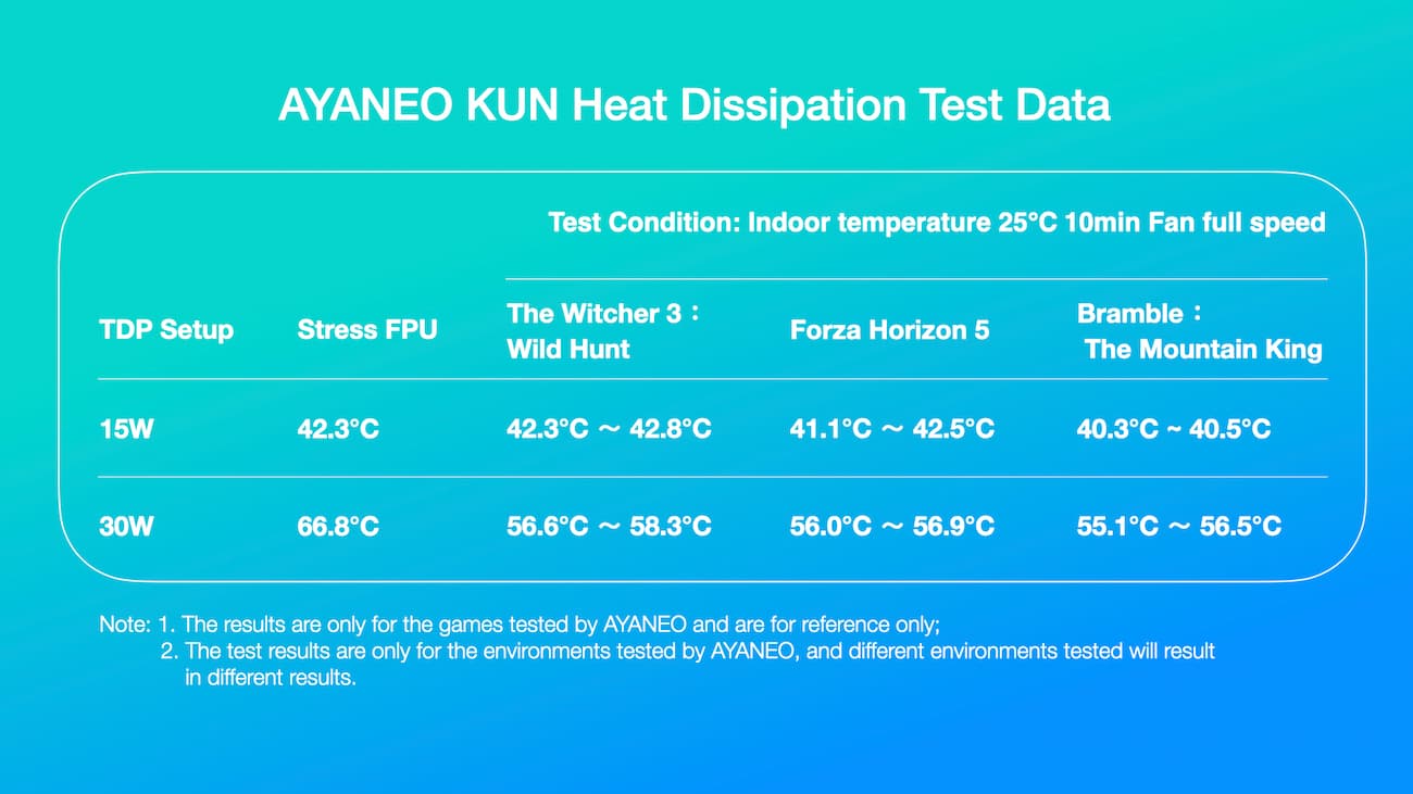 Like every other handheld on the market right now, the KUN will use the AMD 7840U chip, but thanks to its form factor, it can go up to a whopping 54-watt TDP. The AYANEO 2s (that I named the king of handhelds) stops at 33W, while the Steam Deck stops at 15 watts.