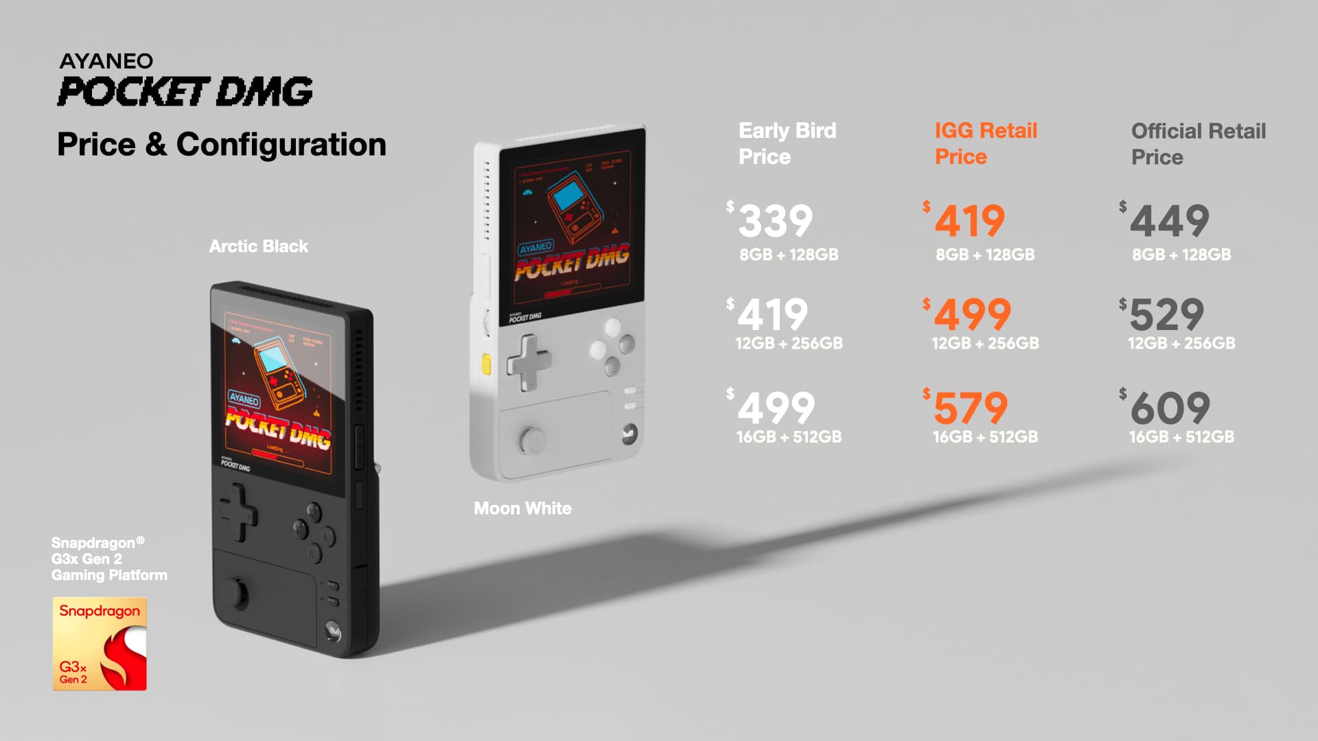 The Game Boy-inspired Pocket DMG starts at $339, while the Game Boy Micro-inspired Pocket Micro is priced at $189.