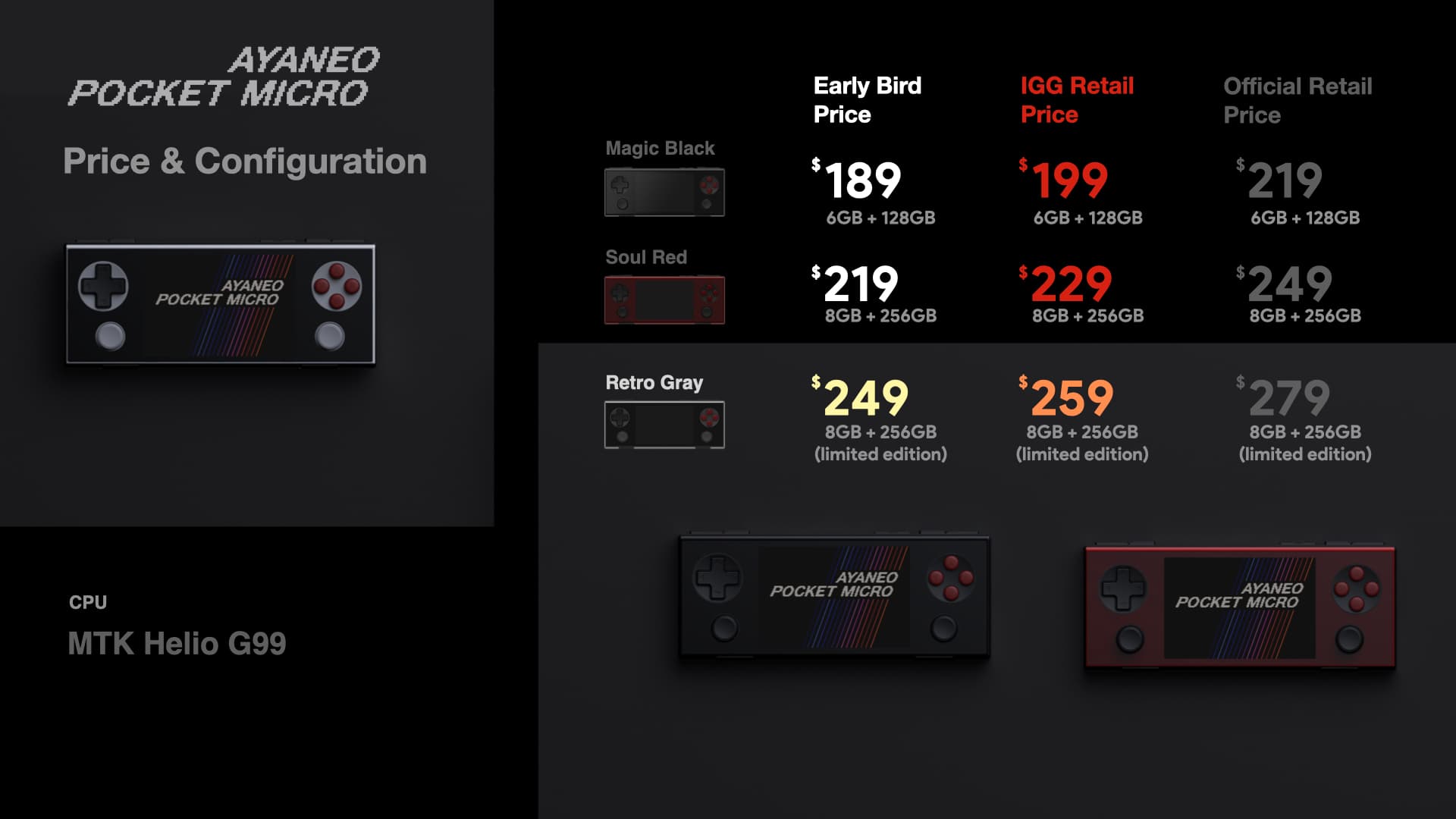 AYANEO's Game Boy, and Game Boy Micro-inspired devices are both live on Indiegogo. The Pocket DMG (the Game Boy one) starts at $339, while the Pocket Micro starts at $189. The prices for both devices go up to $499 and $249, respectively. Remember that these are Early Bird prices only valid during the Indiegogo-campaign.
