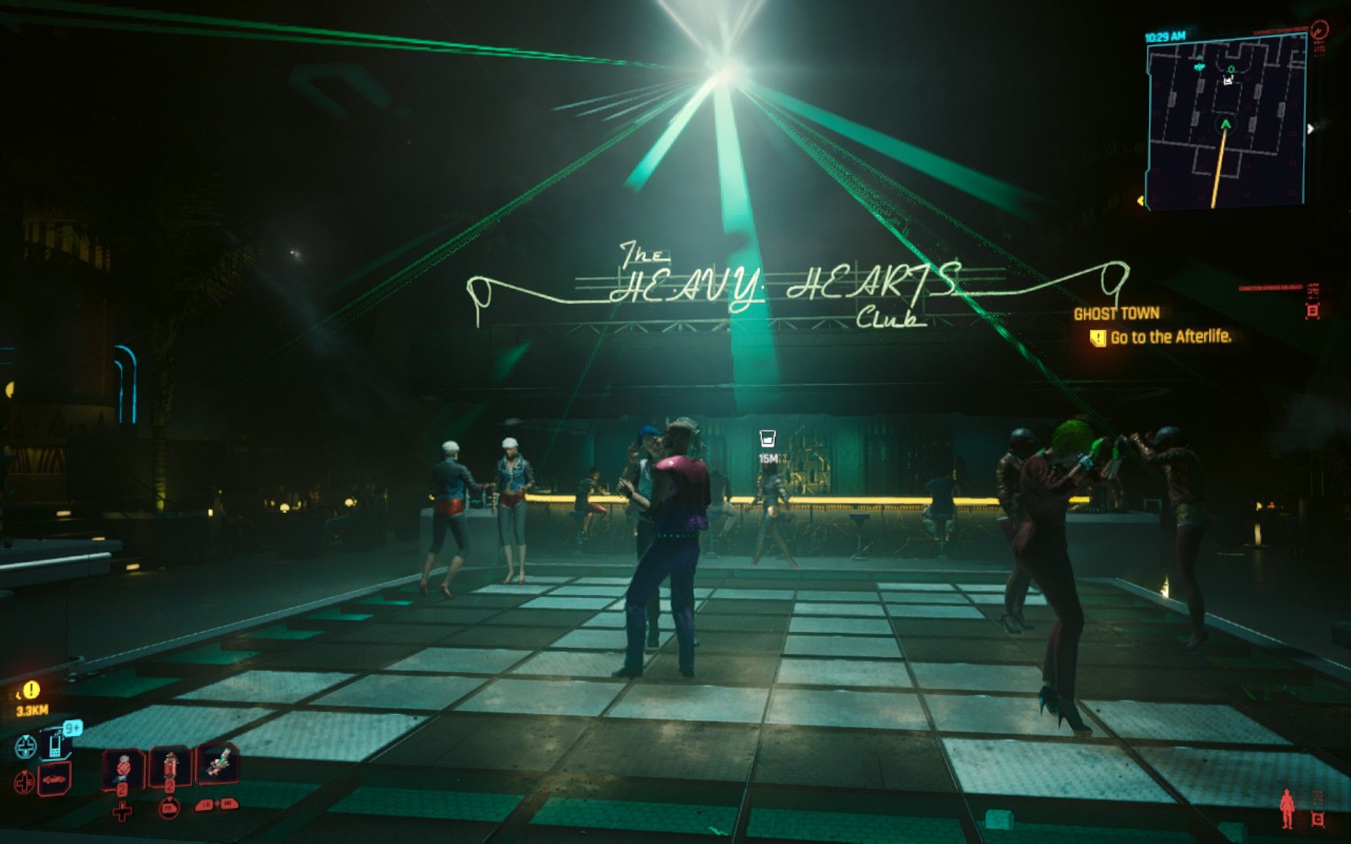 For example, the Black Market tends to give the Steam Deck's APU a heavy workout, primarily due to its many NPCs entering and leaving the player’s view. Expect regular dips into the 35 FPS range during movement. When engaging with the grim folk down there, the frame rate often tends to stabilise after a while. Heavy Hearts (an upper-class trance club nestled in the iconic pyramid next to DogTown’s stadium) presents a bigger challenge: Regardless of movement, the numerous NPCs and laser-show effects take their toll.