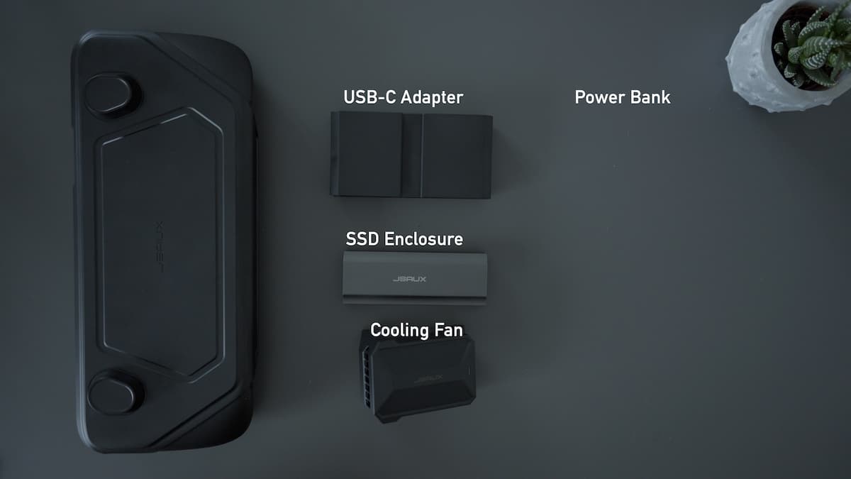 As for the JSAUX Modcase, the basic set will set you back just $29.99, including the travel cover, protective case, kickstand and accessory loop. JSAUX sells the additional accessories in kits as well as individually. If you want the basic set with the cooler, it'll cost $49.99. If you want the USB-C hub, you have to pay $79.99, the same price as the power bank kit. And for $39.99, you'll get the basic set and the m.2 slot kit. And if you want them all, you can get the Ultimate kit for $139.99.