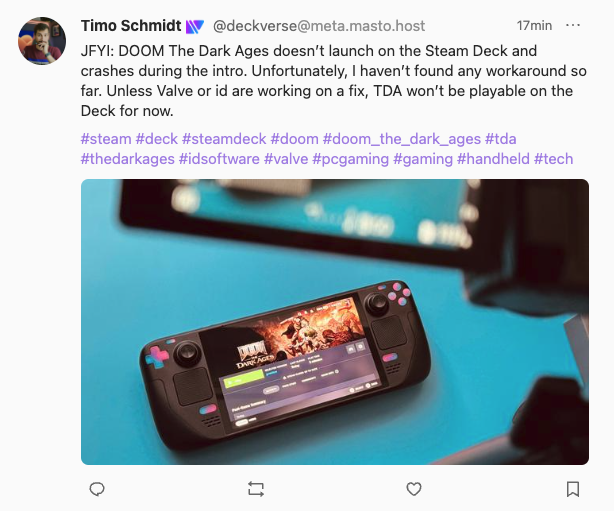 Valve released a fix, and Doom: The Dark Ages now runs on Valve's handheld PC.