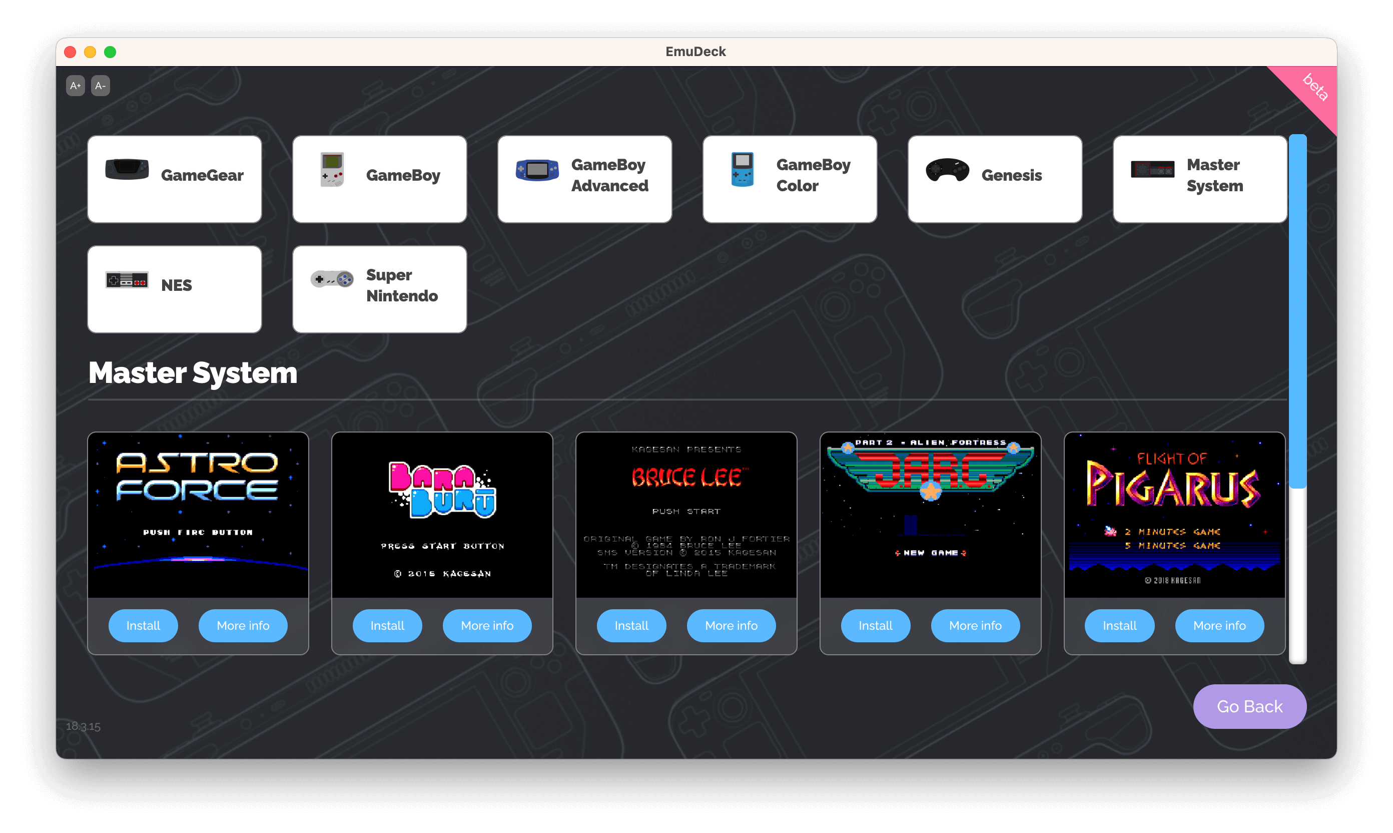 Another major change is the introduction of the EmuDeck store, a repository of homebrew games, that can be freely installed through and – at least in this version – played through Emulation-Station.