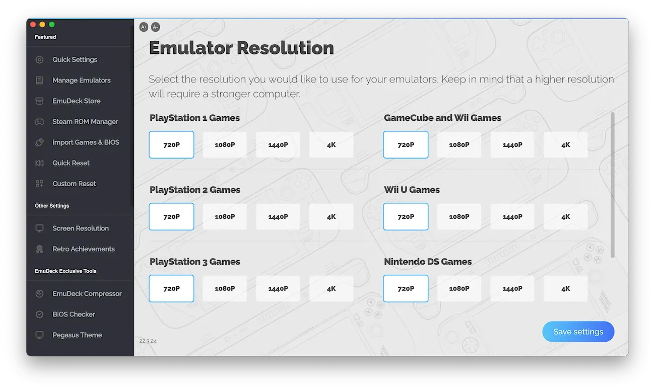 EmuDeck 2.2 is also bringing a few quality-of-life improvements, like a new SteamRom-Manager theme, a resolution selector for external monitors, better Linux and ChimeraOS support, and a layout selector for Nintendo and Xbox inputs.