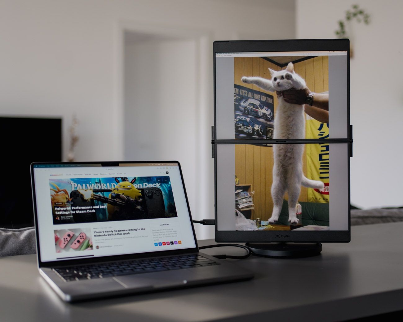 The FlipGo does what it says: it extends your device to more screens, whichever device that is (JSAUX says the FlipGo is compatible with Mac — DisplayLink is needed for Apple Silicon processors —, Windows, Linux, Nintendo Switch, iOS and Android). You can either use it as a dual monitor solution or, if you get the Pro-version, to stretch a display out over both screens.