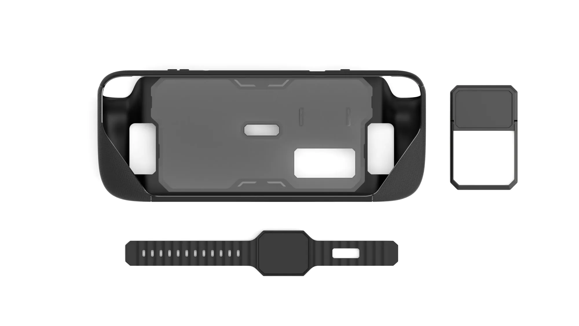 Similar to dbrand's delayed Project Killswitch (although with a less cringy name, if I may say so), the ModCase will have a special mechanism to attach different peripherals to the back of the Steam Deck.
