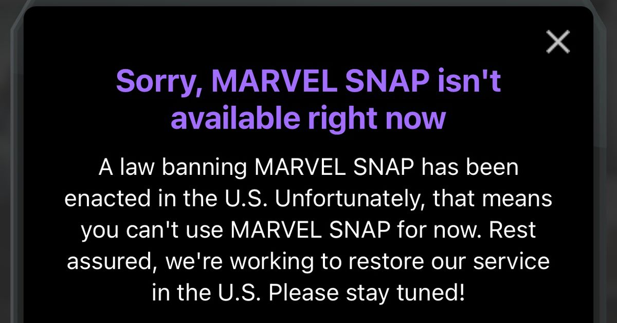 Thanos Snap! A U.S. law requiring Chinese company ByteDance to sell its stake in TikTok has come into effect — but the ban has also hit popular Superhero card battler Marvel Snap.