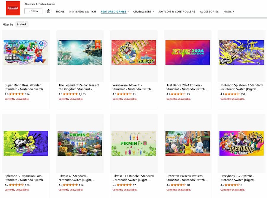 First-party Nintendo games have not been available on Amazon US for months.