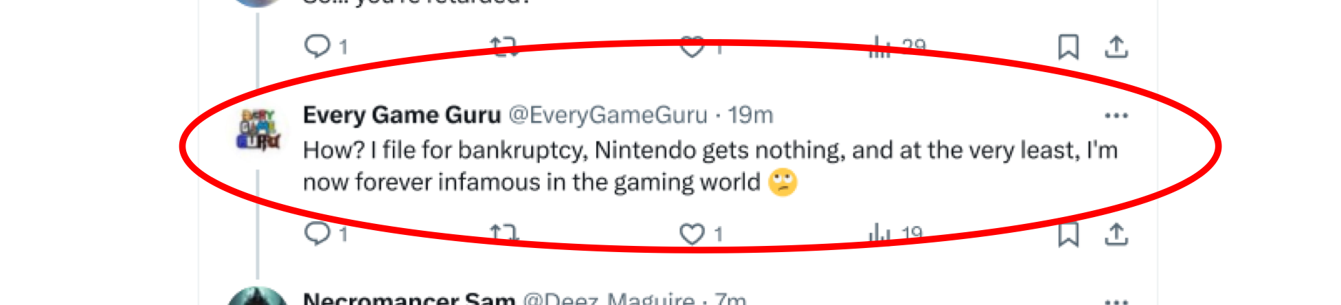 Keighin isn't just outright ignoring the case though — instead he appears to be doubling down on trash talking Nintendo and the associated law firm that's assisting with the case. Screenshot evidence shows Keighin posting boastful and derogatory comments online in indirect response to communication efforts from Nintendo — the updated filing refers to this as "threats and hostile language toward outside counsel".