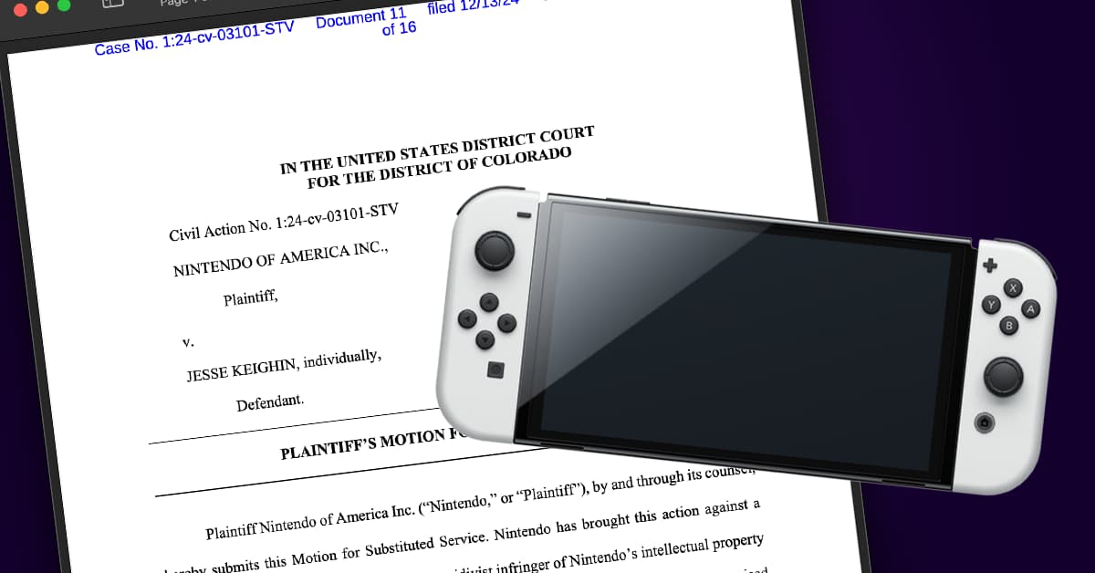 Keighin very much is aware of the suit, seemingly posting online with knowledge of the impending action — however, a court needs something more than just a screenshot of a tweet — be that a signed receipt, delivery confirmation, or a sworn statement from someone who physically handed over the papers. On January 29, the Switch maker filed new documents outlining exactly how they served Keighin, in an effort to convince the court that he has been properly notified of the litigation.