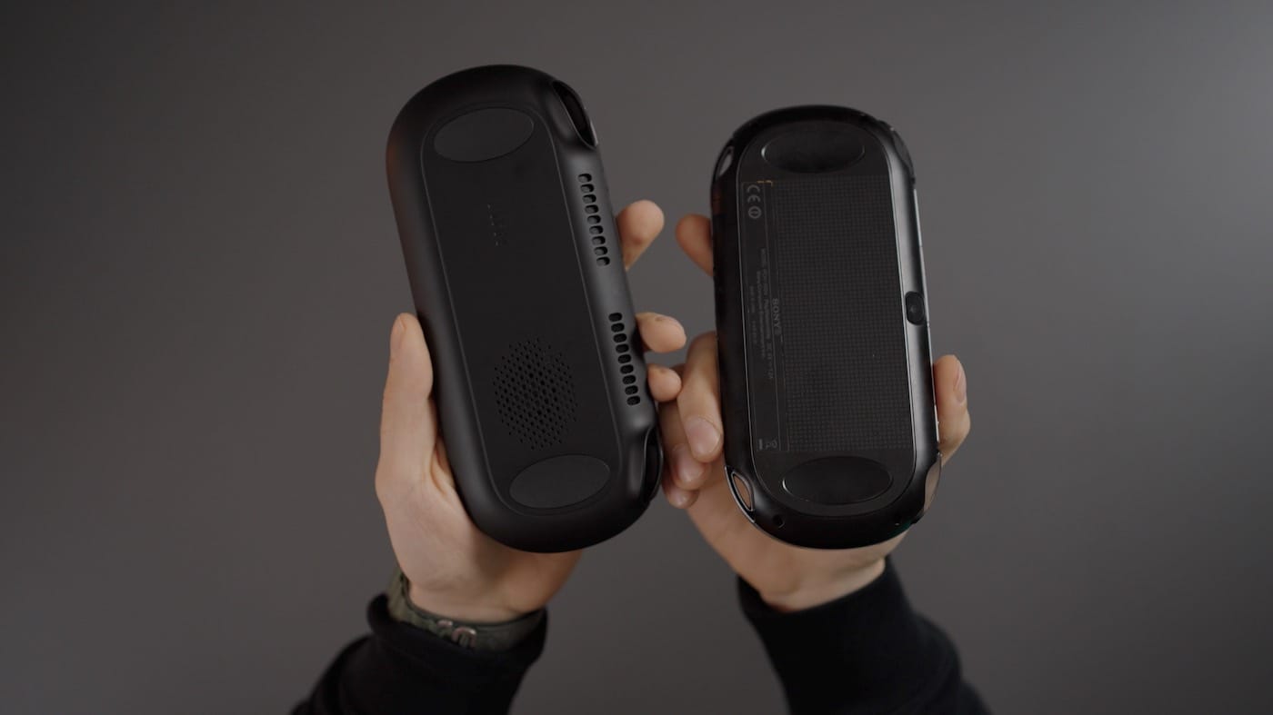 Back to the design: AYN also decided to opt for front-facing speakers, whereas, on the Vita, you had little insertions for loops or straps (see image below). By the way, plus points for front-facing speakers. While you won’t use this device as a ghetto blaster (do people even still know what that is?!), it’s good enough for playing video games on the couch without the need to wear headphones.