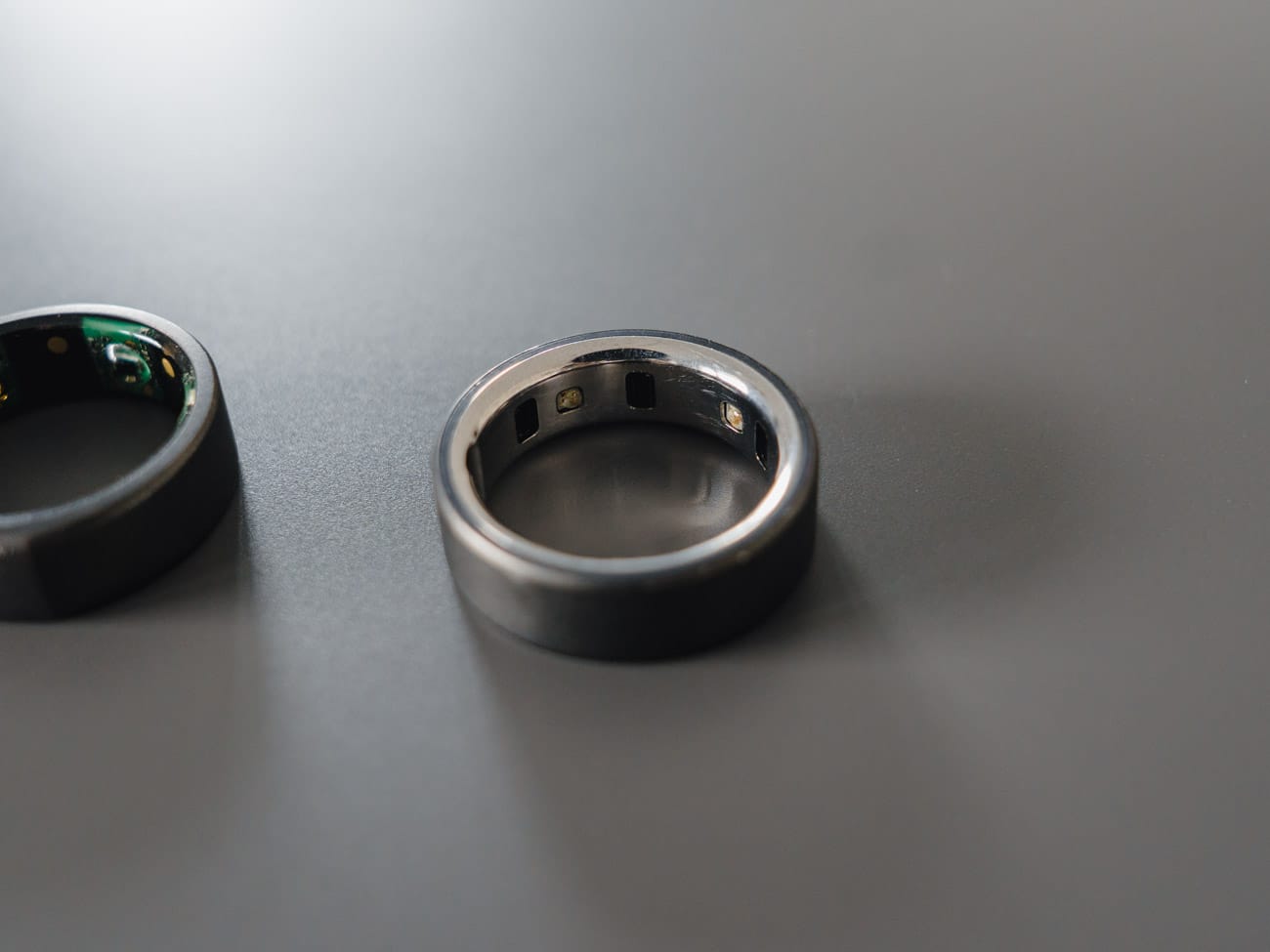 The old Oura ring (left) has these little sensor bumbs, while the new one (right) is flush.