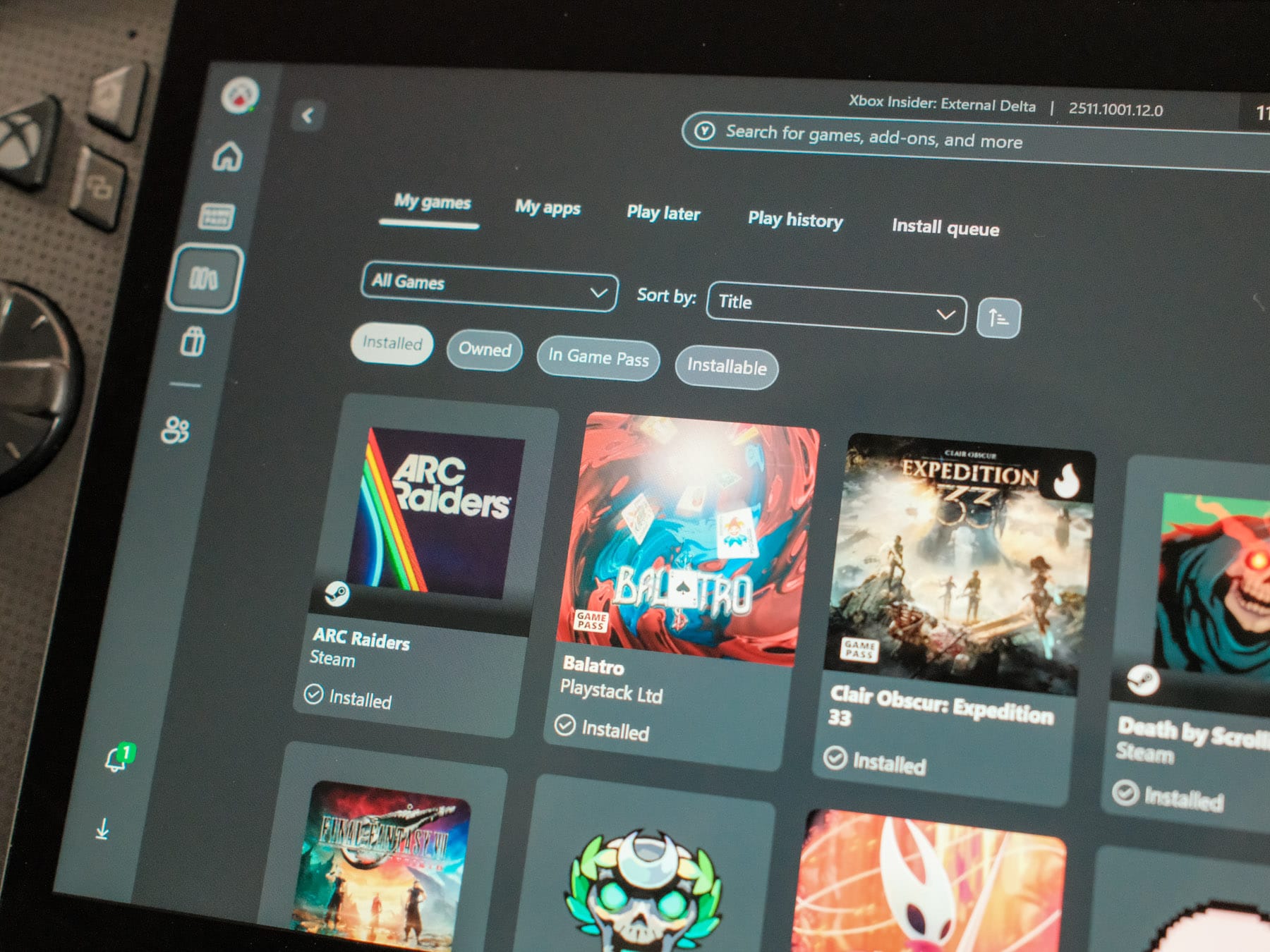 Microsoft’s new Xbox Full Screen Experience boots straight into a controller-friendly UI, keeps the desktop closed, and kills a handful of background processes. Task Manager shows lower idle watt draw than the first Ally, so you get a little extra thermal headroom. It feels closer to a console shell than any Windows handheld I have tried. This shell also shows games installed through other launchers like Steam or Epic Games. And games installed through the Xbox Store even tell you if they work on a handheld or not.