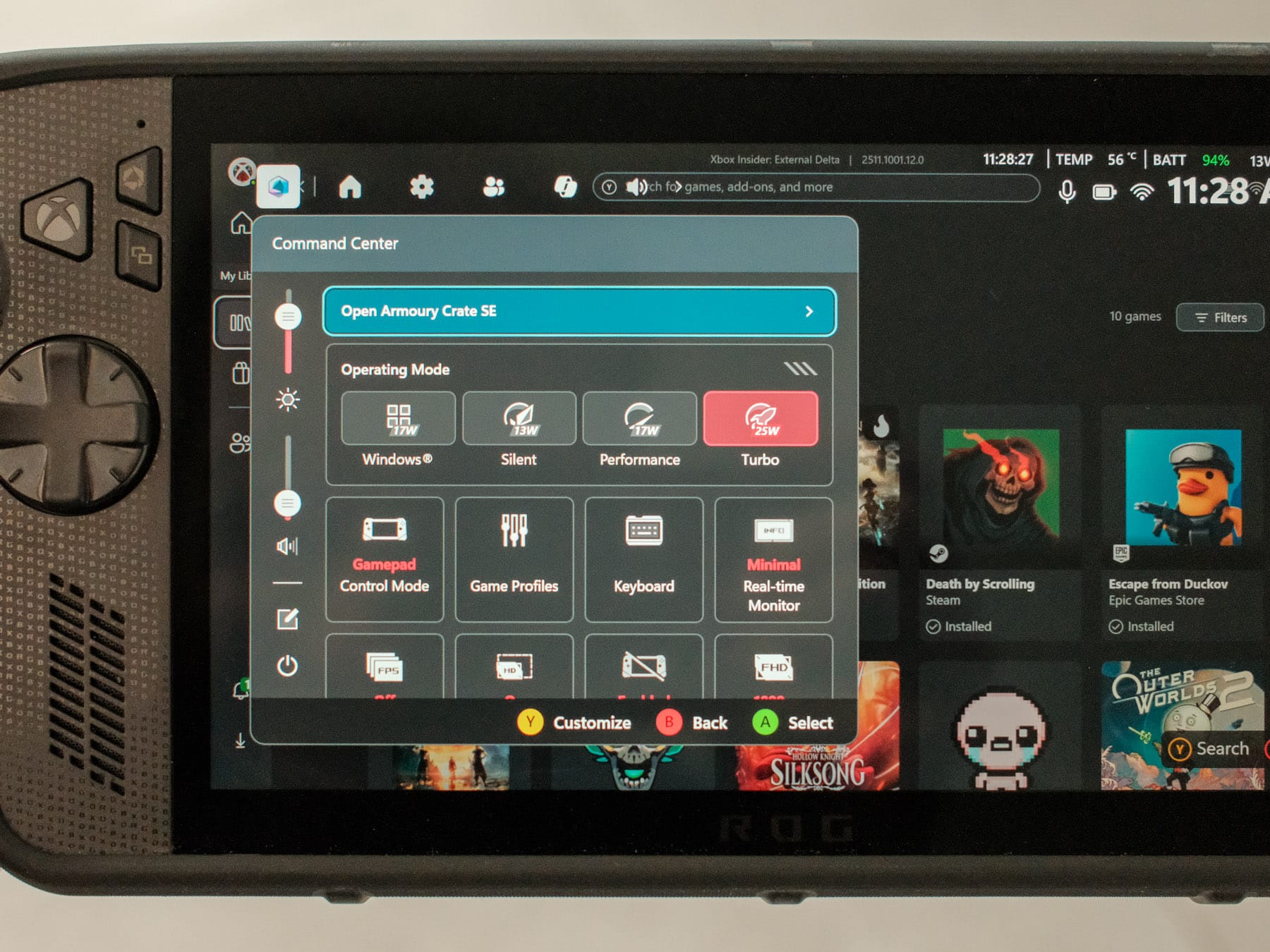 Buttons and sticks are familiar, though there is now an Xbox button, and ASUS changed the position of the Start and Select buttons. My muscle memory hates this.