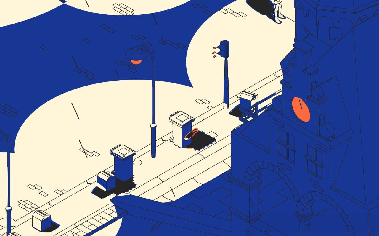 This journey of shade jumping takes place across a series of Dutch-inspired street scenes — hopping from the cover of a resting bike, into the shadow of a passing car, and across the street into the shelter of darkness cast by a waiting pedestrian. It’s a rewarding, and distinctive platformer which encourages exploration and a curiosity about the space you find yourself in — it struck a certain childlike wonder within me, scouting my surroundings for a way forward.