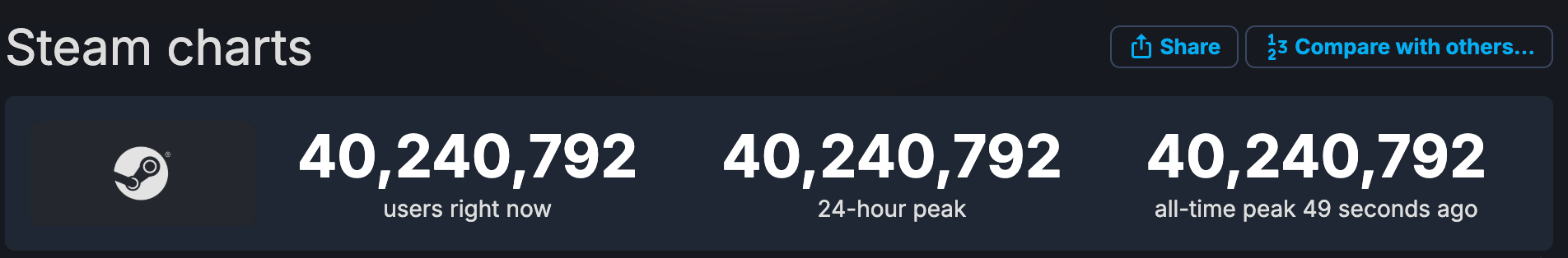 40 million concurrent players are logged into Steam for the first time ever.