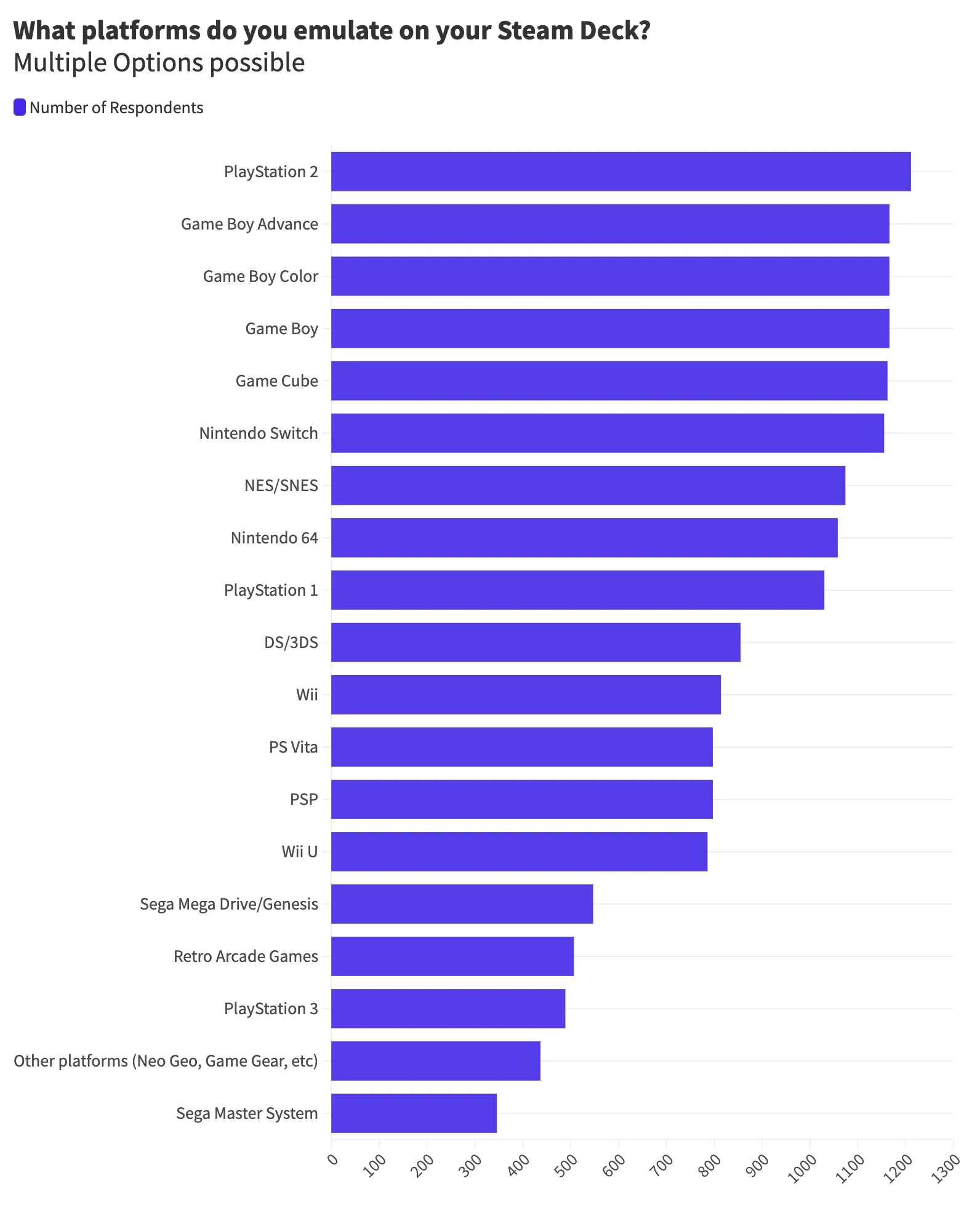 - Retro handhelds (PS Vita, Nintendo 3DS, Game Boy Color, etc): 1,506 respondents