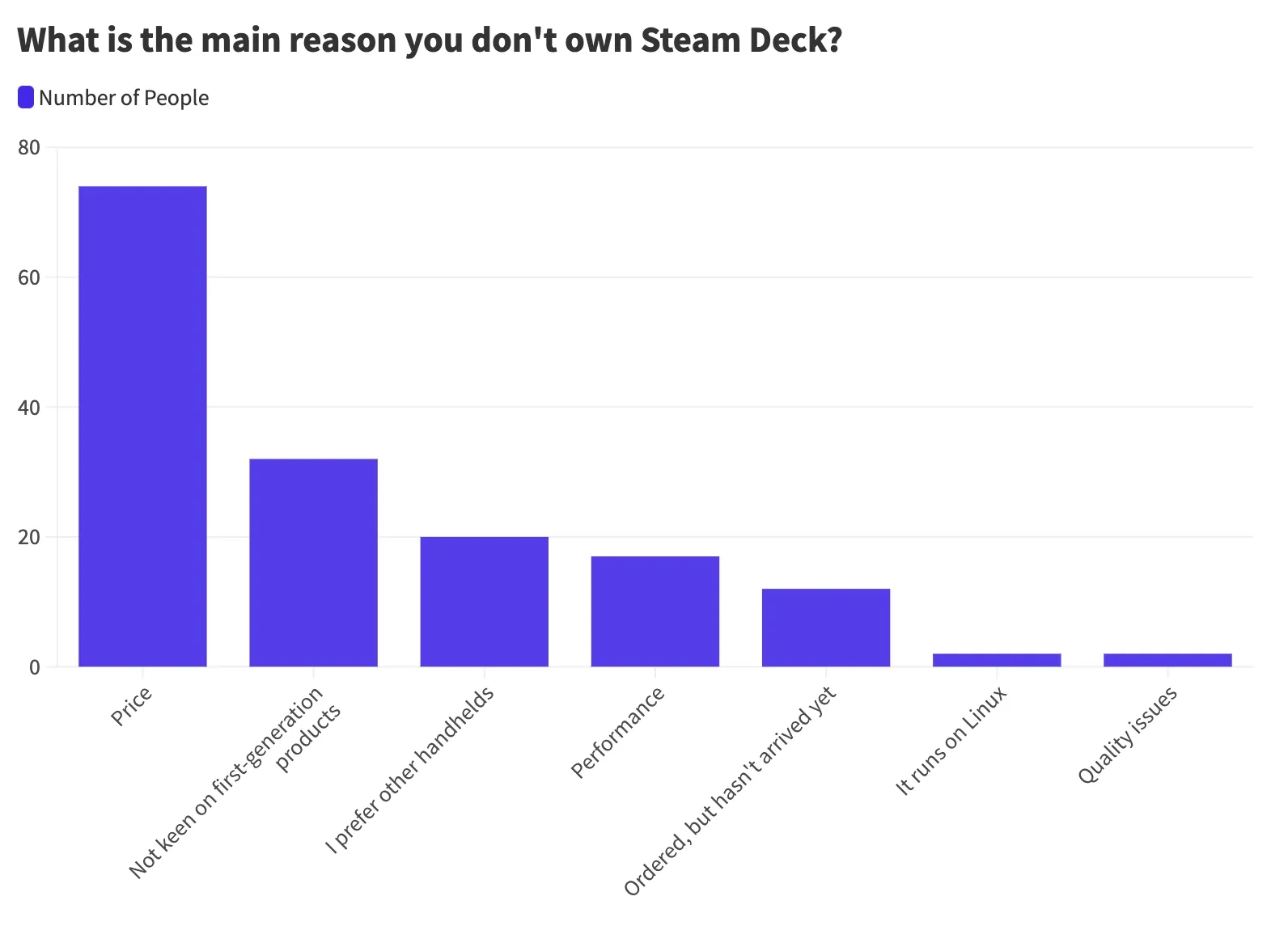 The number one reason those gave for not owning a Steam Deck was price – which also happened to be the number one reason in last year's results. Here's the full breakdown:
