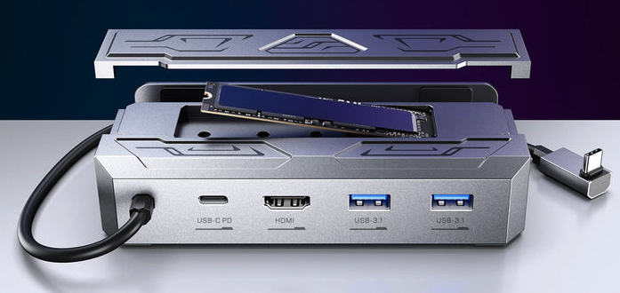 Now, this isn't the first Steam Deck dock from JSAUX — it's actually the third dock product they have bought to market. The company seems to be quickly iterating their product line of Steam Deck accessories, and improving the offering each time. This new model (officially the M.2 Docking Station for Steam Deck HB0604) sports a fresh design, and is the first to add in an SSD slot.
